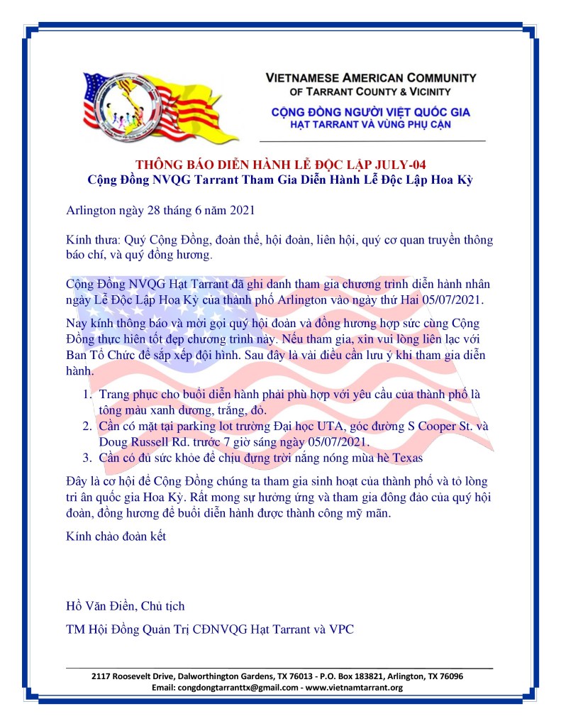 Thông Báo Diễn Hành Lễ Độc Lập Share this: Click to share on X (Opens in new window) X Click to share on Facebook (Opens in new window) Facebook Like Loading... Related