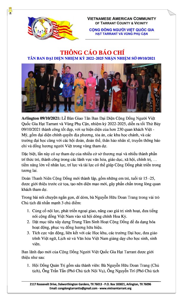 Thông Cáo Báo Chí – Nhân Sự Mới CĐVNQG Tarrant Share this: Click to share on X (Opens in new window) X Click to share on Facebook (Opens in new window) Facebook Like Loading... Related