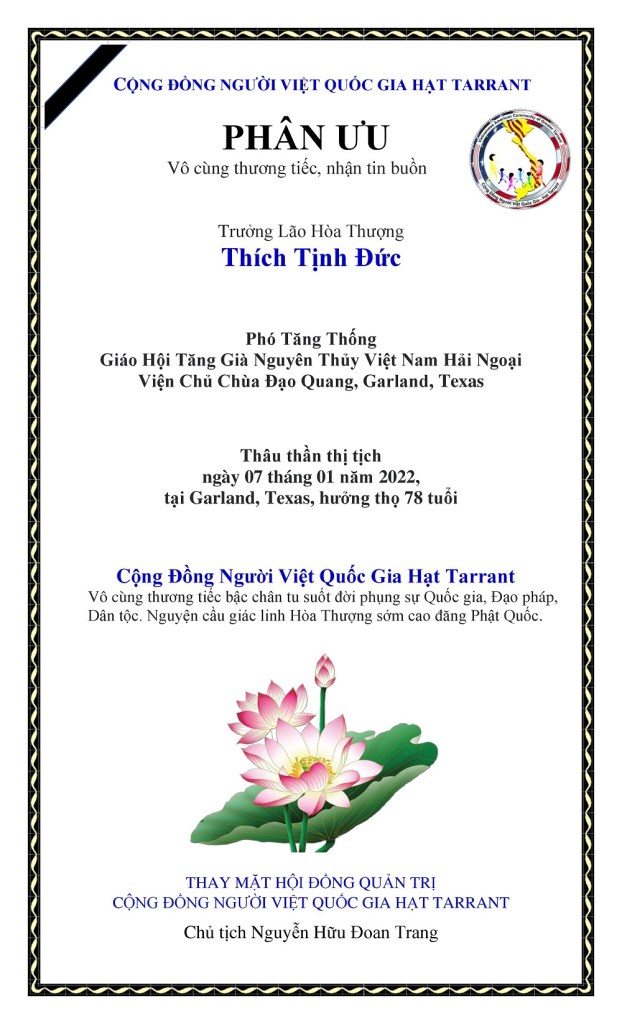 Phân Ưu – Hoà Thượng Thích Tịnh Đức Share this: Click to share on X (Opens in new window) X Click to share on Facebook (Opens in new window) Facebook Like Loading... Related